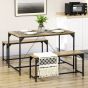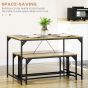 Dining Table and Bench Set for 4, Kitchen Table with 2 Benches, Space Saving Dining Room Sets, Natural