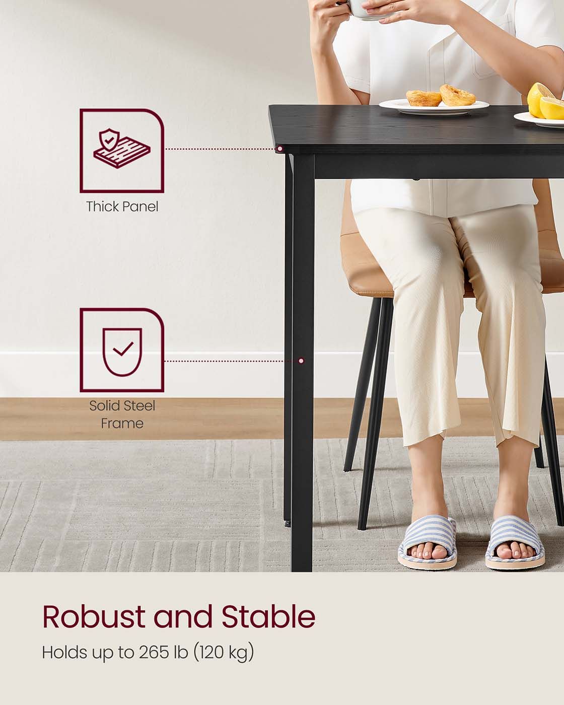 This elegant round dining table, measuring 80 x 75 cm in a sophisticated Ebony Black and Ink Black finish, is perfect for intimate gatherings. Its stylish design and compact size make it an ideal centerpiece for your dining room or kitchen, offering a chic and functional space for meals and conversations.
