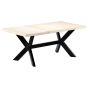 This stylish wooden dining table in the modern style will make a distinctive addition to your kitchen or dining room. This dining table is made of solid mango wood. Mango wood is a dense and robust hardwood which has beautiful brown or golden streaks and contours on its surface. The dining table is fully handmade and each step of the process is carried out with the greatest care, be it a bleached white finish. The steel legs complete the modern look, along with the steel cross frame that contributes to the sturdy construction. The dinner table is easy to assemble. Important note: The colours may vary from piece to piece, making each of the dining tables unique; the delivery is random.