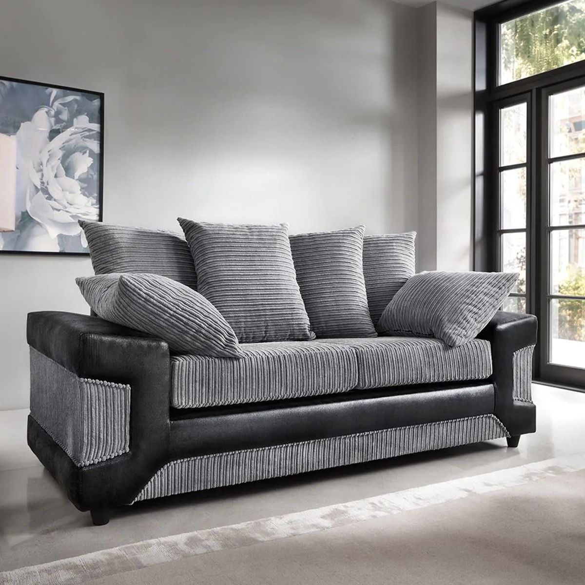 You're reviewing:Dino Jumbo Cord Black and Grey Sofa Set