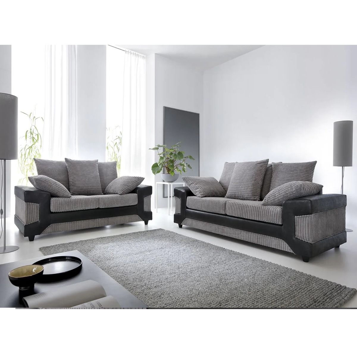 Dino Jumbo Cord Black and Grey Sofa Set