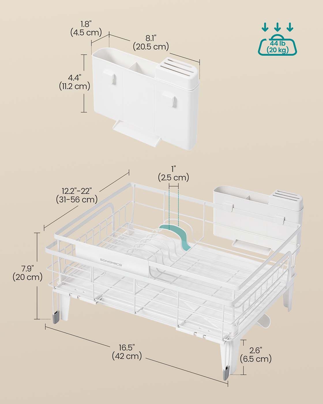 Dish Drying Rack - ASTNZA Expandable Steel Rack with Silicone Mat - White