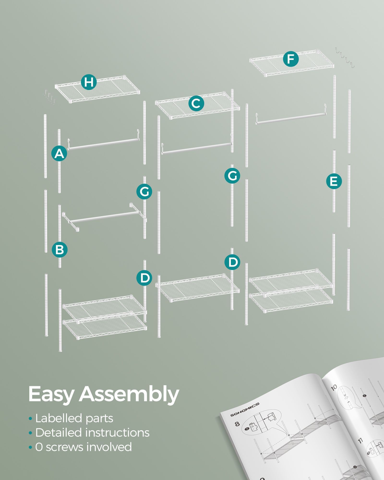 Dividable Open Portable Wardrobe Cloud White