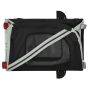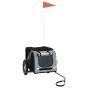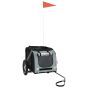 This handy dog bike trailer is a great addition to your pet's day out, allowing your pet to enjoy a more comfortable journey. Durable frame: Iron is a strong and hard material. It's a solid favourite in industrial and furniture construction. With a frame made of iron, the bicycle trailer is sturdy and reliable, giving you peace of mind when riding on the road.Comfortable bike trailer: This bike cargo trailer is made from oxford fabric and features the PVC cover to keep your pet out of the drizzle. In addition, there is a black load-bearing board at the bottom for comfortable space.Convenient design: Zippered front and back doors make it easy to get in and out, and the mesh windows and a zipped roof allow air to circulate inside and keep your pet cool during the journey.Safe riding: The bicycle cargo trailer has two large wheels that allow for smooth and safe travel on various grounds and the reflectors on the outside provide visibility in the dark, plus the flag can increase traffic safety.Wide applications: Perfect for carrying small dogs and pets, this pet bike trailer can be attached to your bike easily. It can also be used to carry groceries, camping equipment, sporting goods, or whatever you need to take with you!