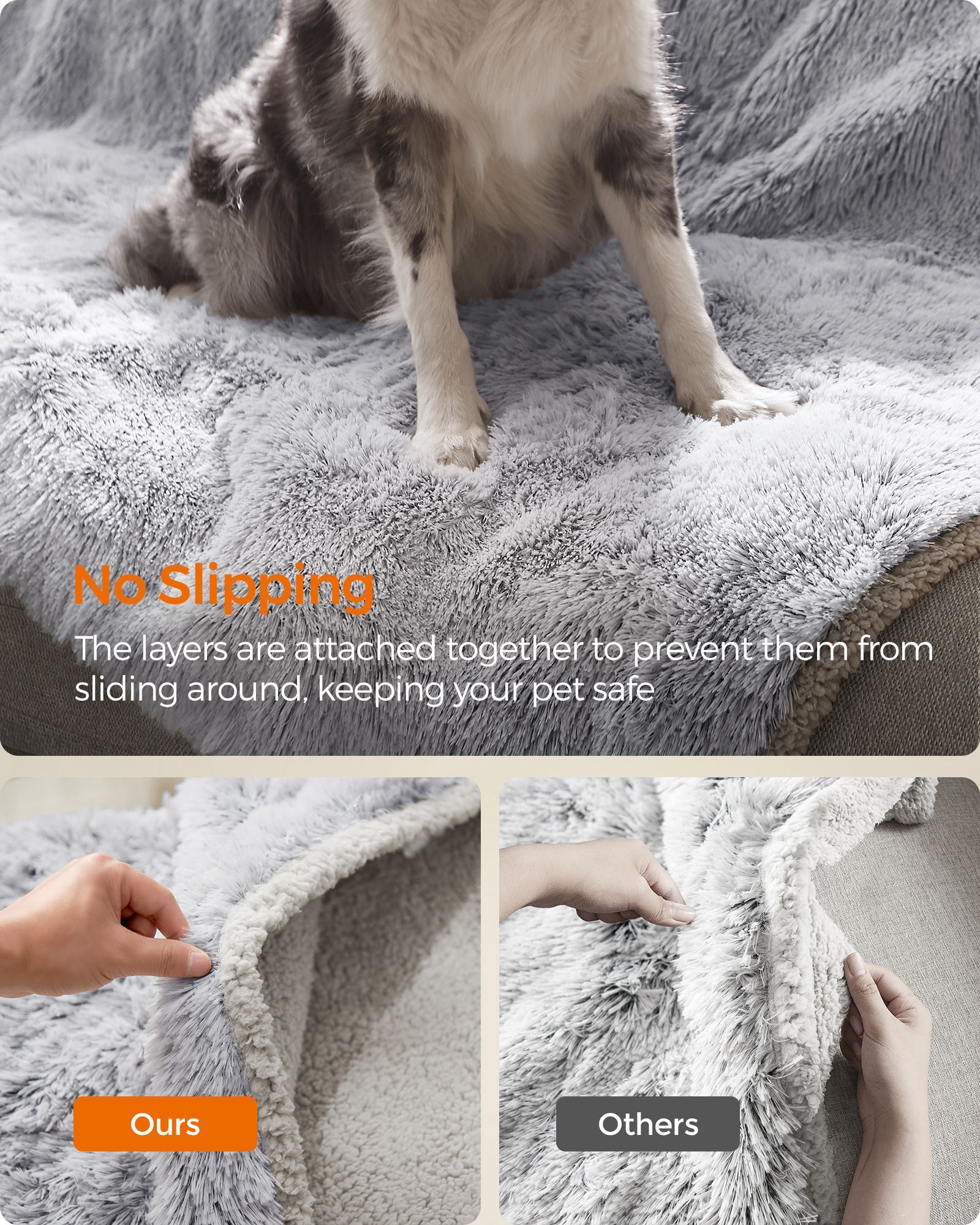 Keep your furniture safe and your pet cozy with the Feandrea Waterproof Dog Blanket. This soft, double-sided Sherpa fleece blanket in a stylish grey ombré design is perfect for miniature dogs and cats. Measuring 73 x 63 cm, it provides a comfortable resting spot and protects sofas and beds from spills and fur.