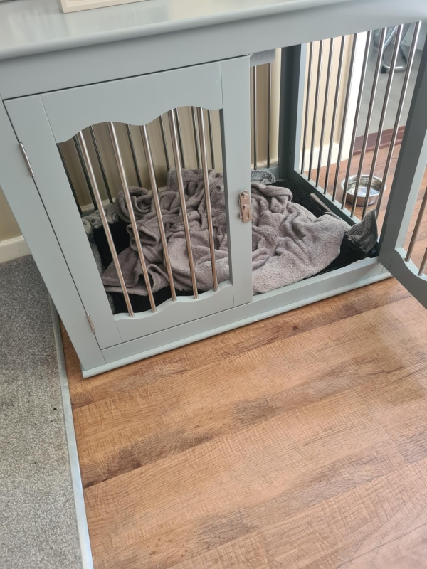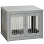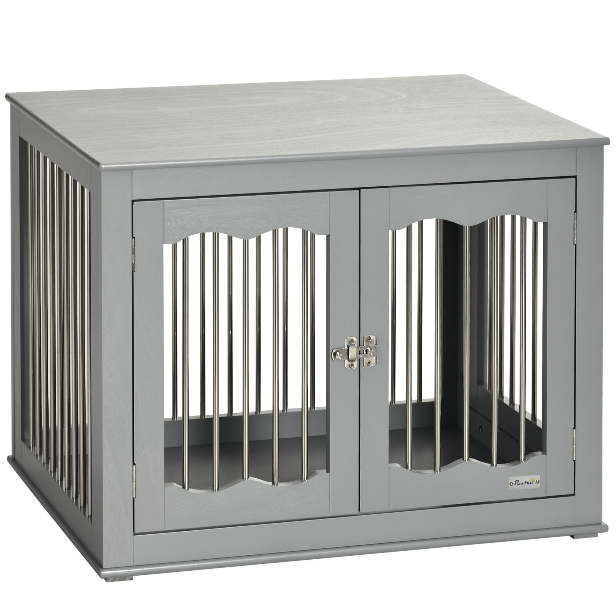 Dog Crate End Table with Three Doors, Furniture Style Dog Crate for Medium Dogs with Locks & Latches, Grey