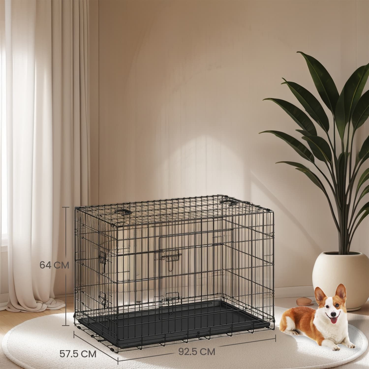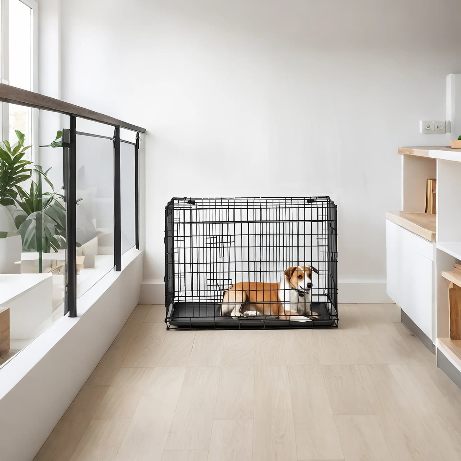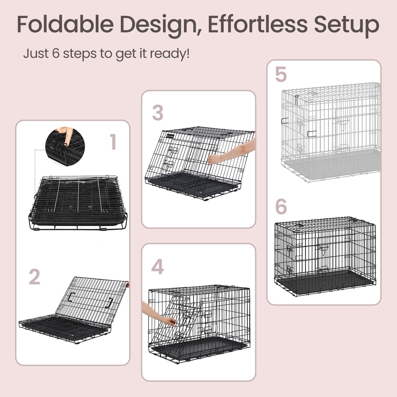 Dog Crate - MARRAE Foldable Metal Kennel with Removable Tray - Black