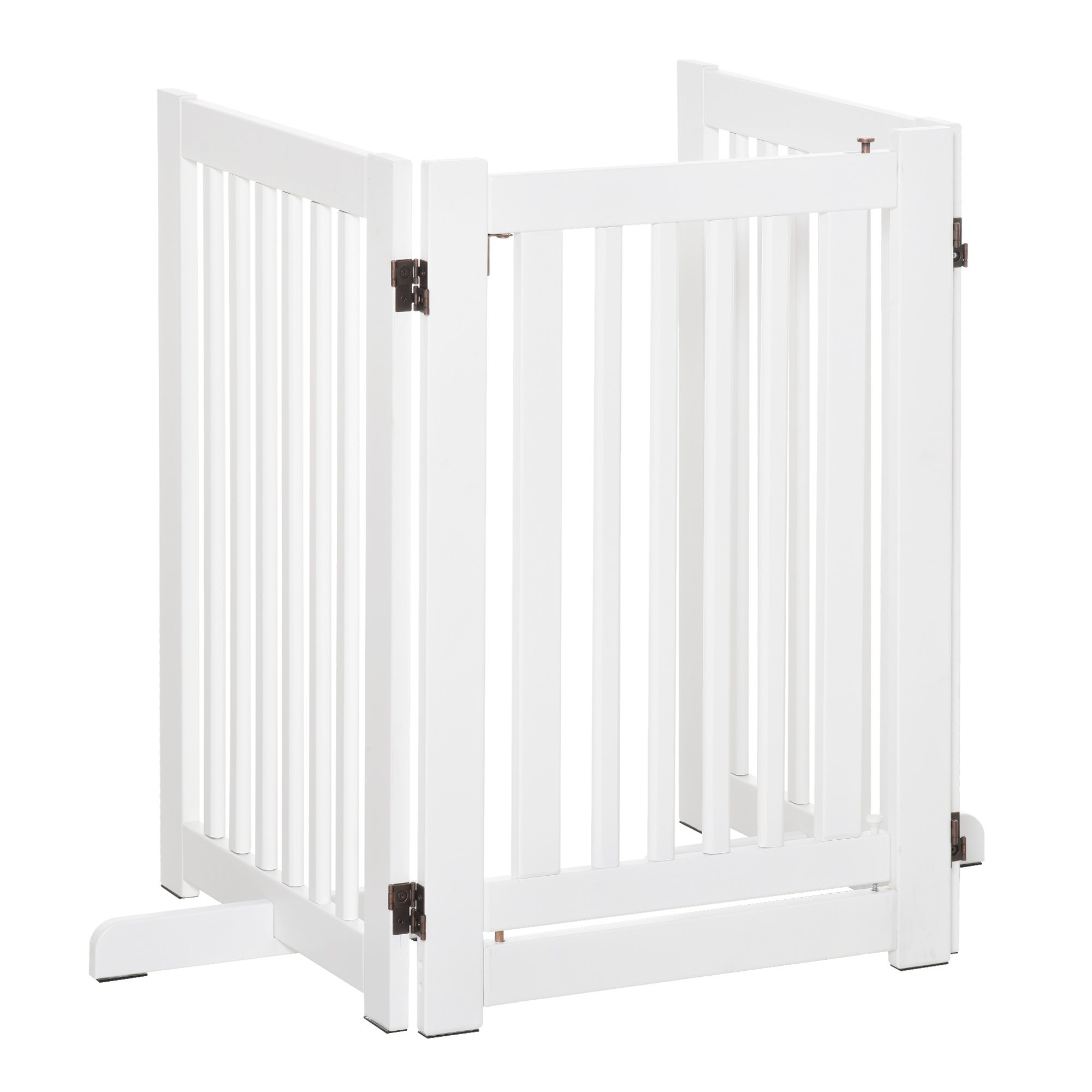 Dog Gate Wood Doorway Freestanding Safety Pet Barrier Fence Foldable w/ Latch Support Feet White, 155 x 76 cm