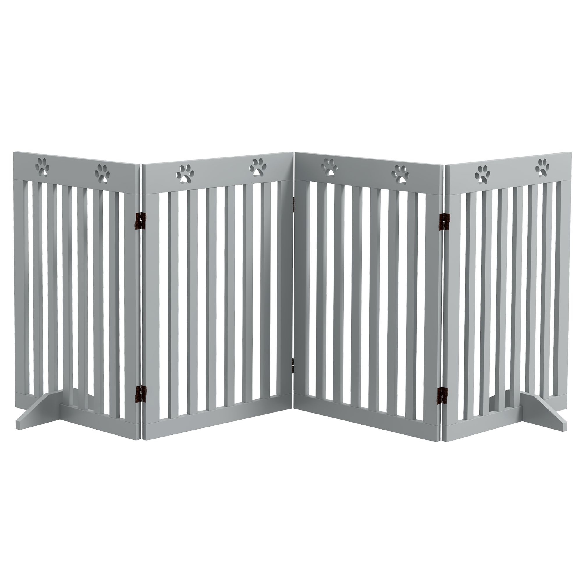 Dog Kennel - Foldable Wooden Pet Gate with Support Feet Grey 204cm