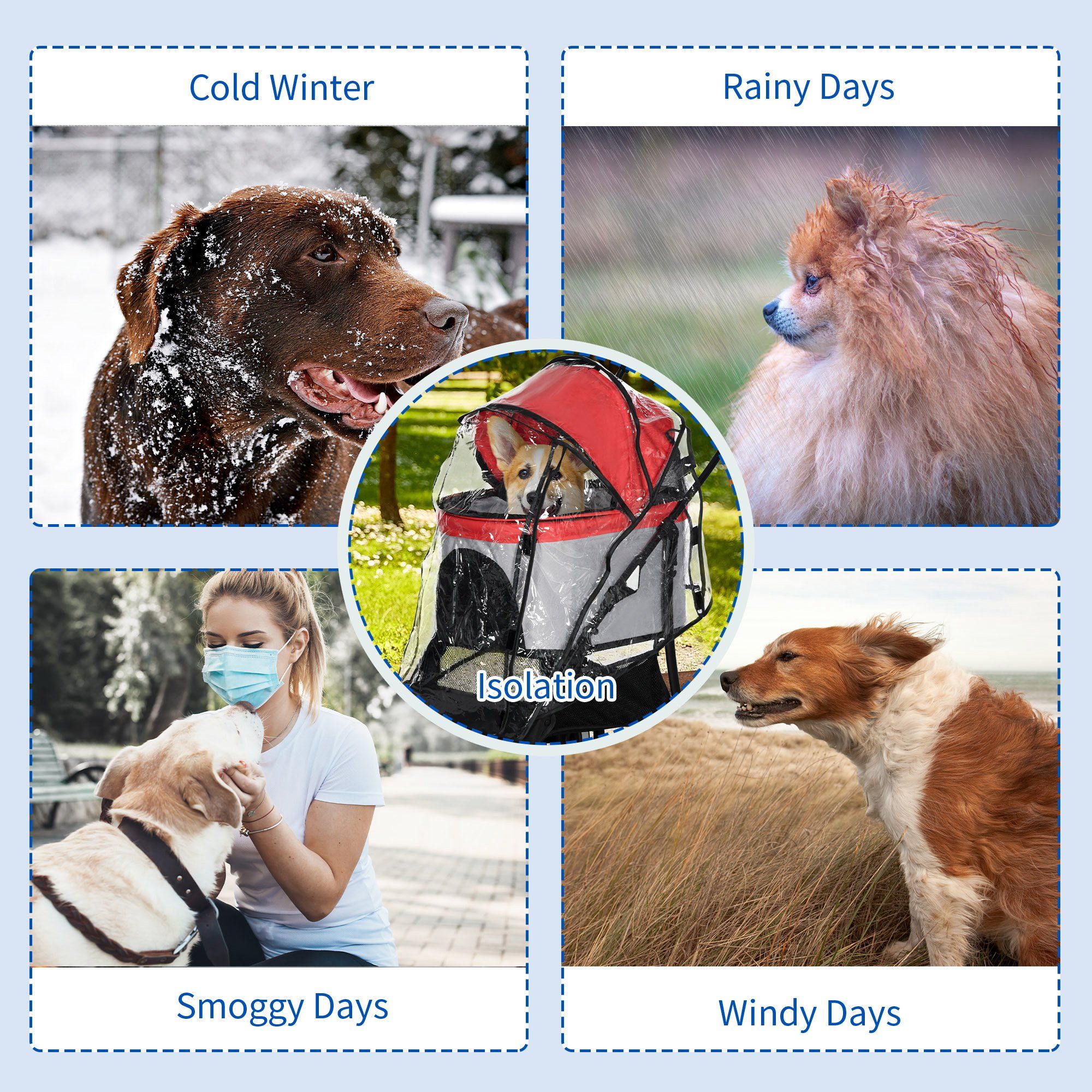Dog Pram Rain Cover, Cover for Dog Stroller Buggy Pushchair for Small Miniature Dogs Cats, with Front Rear Entry