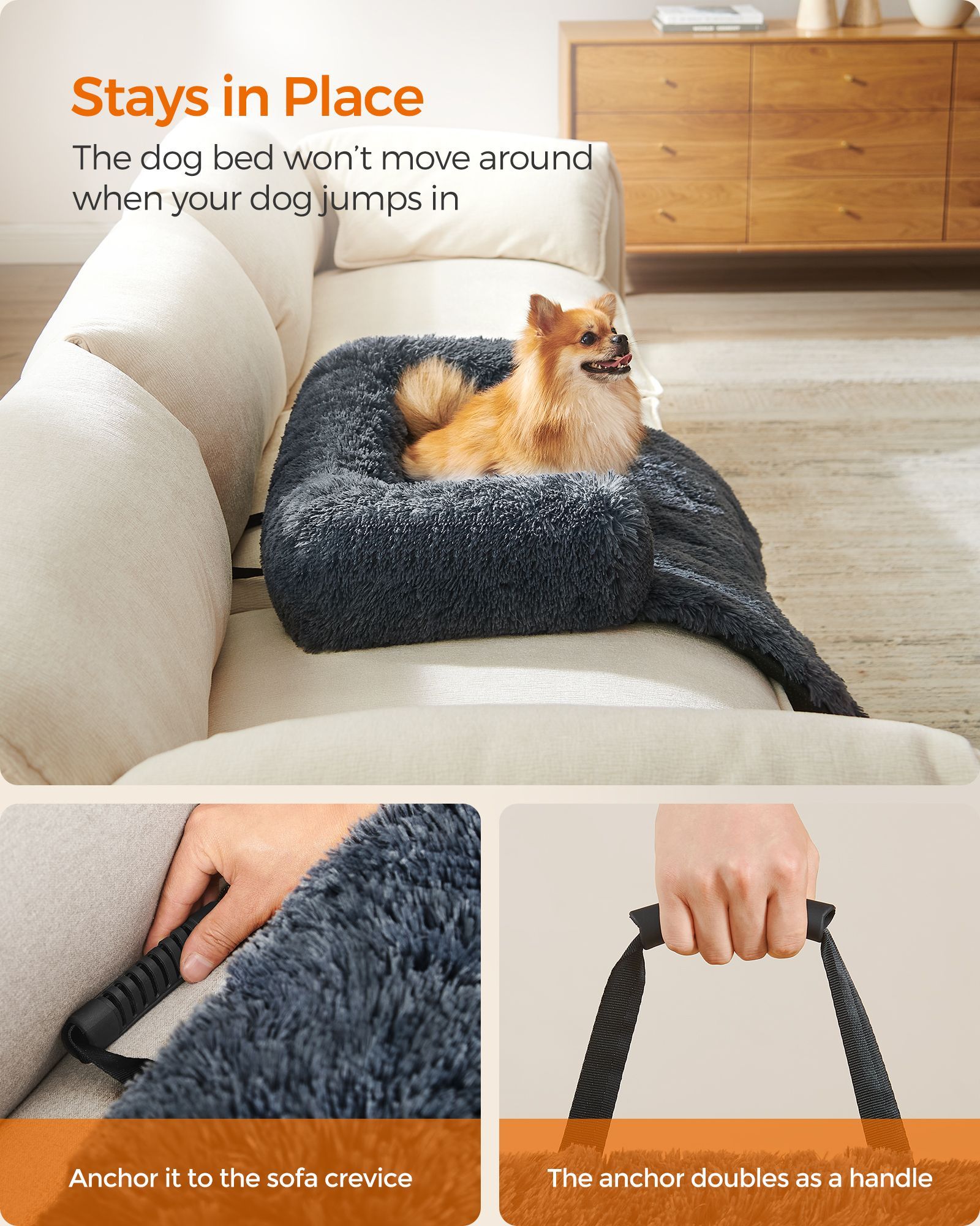 Dog Sofa Bed - MONRA FluffyHug Medium Faux Fur Orthopedic Bolster Bed - Dark Grey