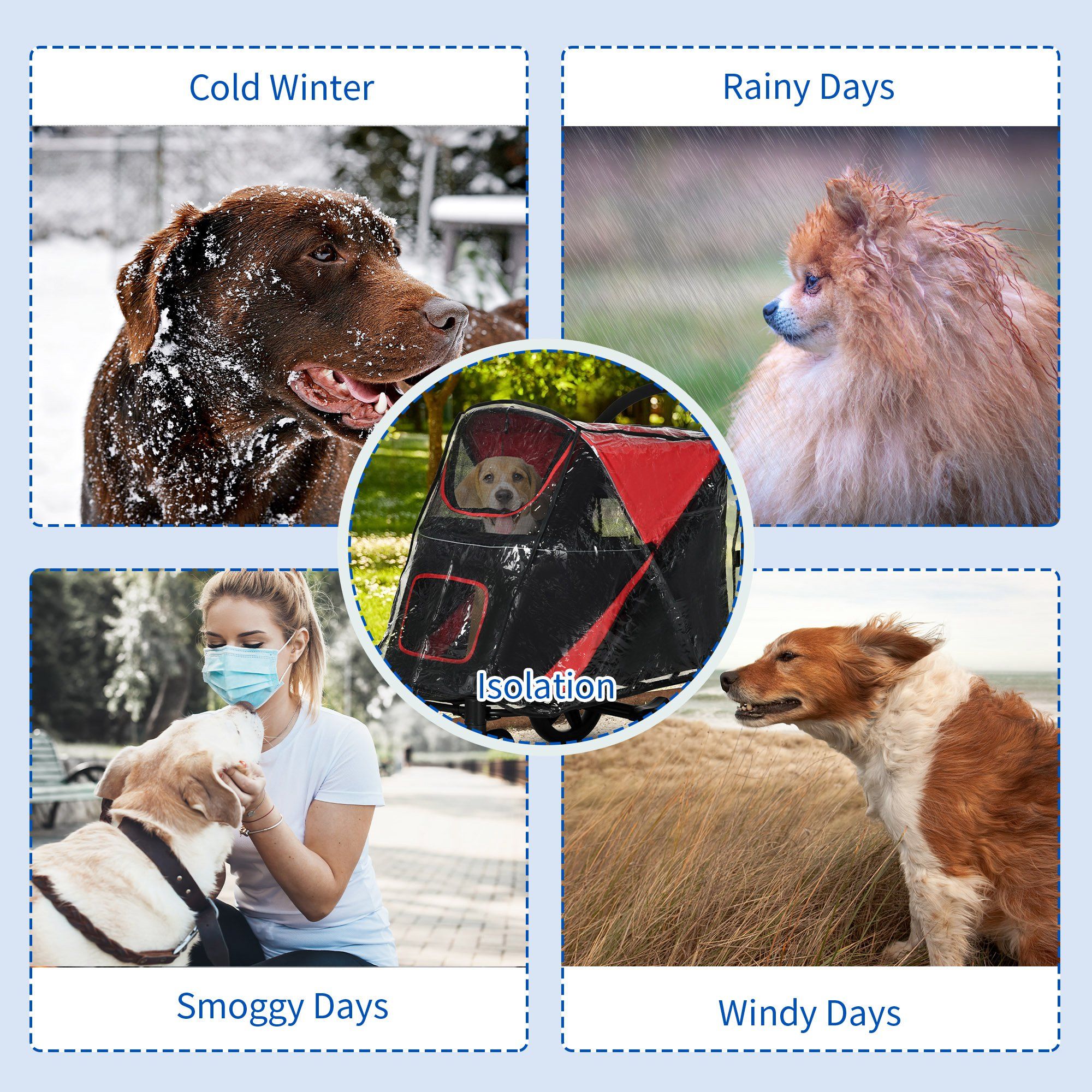 Dog Stroller Rain Cover, Cover for Dog Pram Stroller Buggy for Large Medium Dogs with Rear Entry
