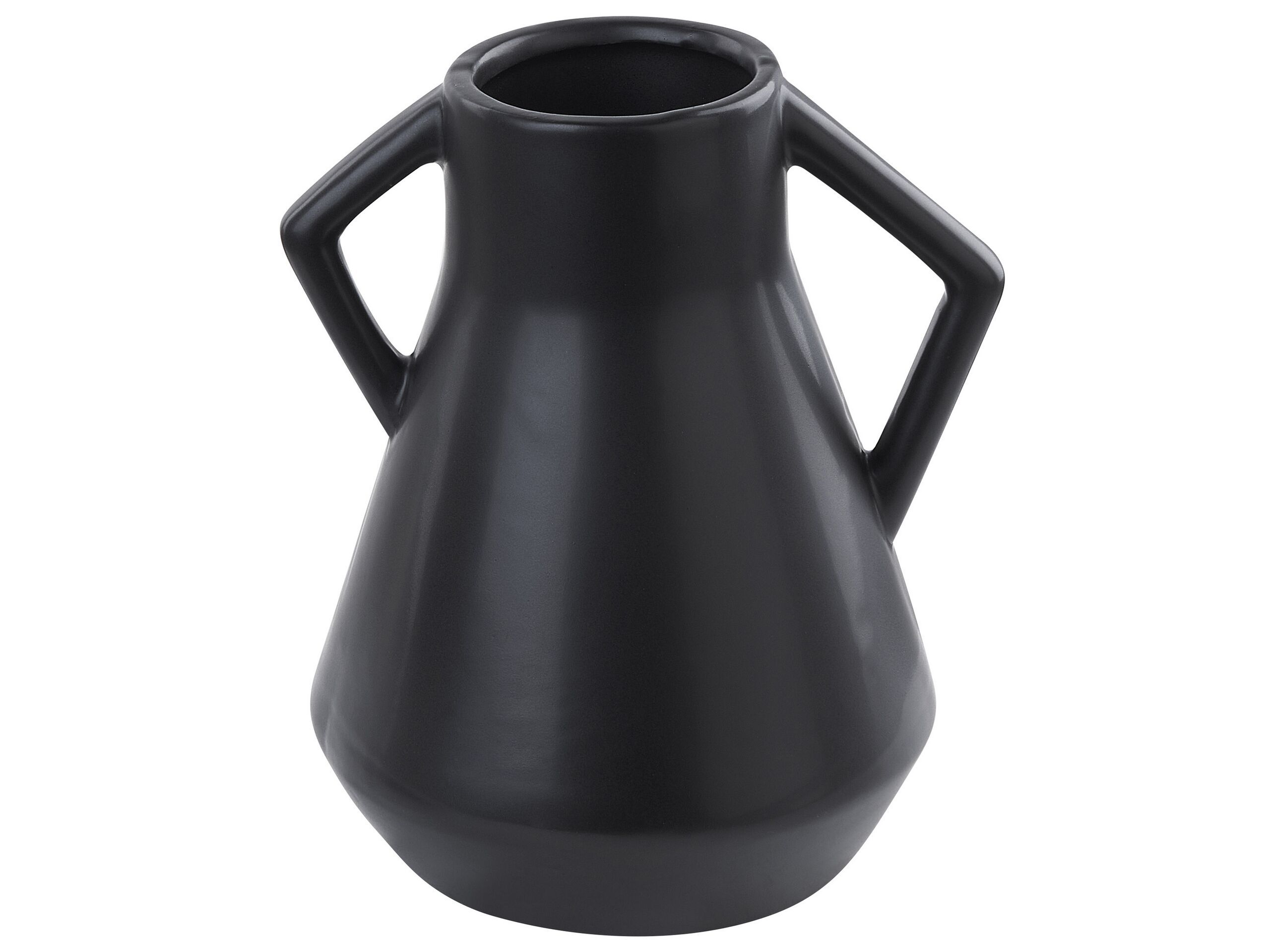 Complete your interior with a new decoration, which will certainly appeal to everyone. The vase has a simple shape and universal colour, it stands out thanks to delicate, asymmetrical handles that give it an extraordinary character. Place a bouquet of fresh or dried flowers in it and set it in the living room or bedroom to enjoy its beauty on a daily basis. Details: Color: Black. Main material: Dolomite Ceramic. Weight: 0.8 Assembly: Does Not Require Assembly