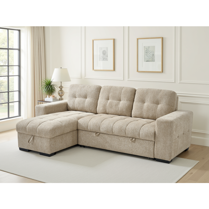 DONATELLO Fabric 3 Seater L Shaped Corner Sofabed - Beige, Reversible Facing