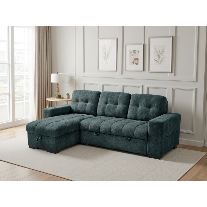 DONATELLO Fabric 3 Seater L Shaped Corner Sofabed - Blue, Reversible Facing