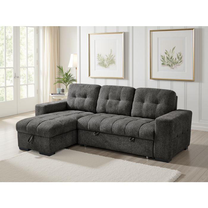 DONATELLO Fabric 3 Seater L Shaped Corner Sofabed - Grey, Reversible Facing