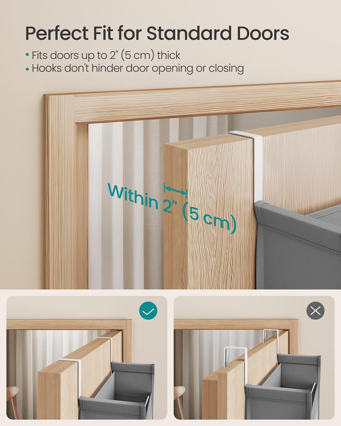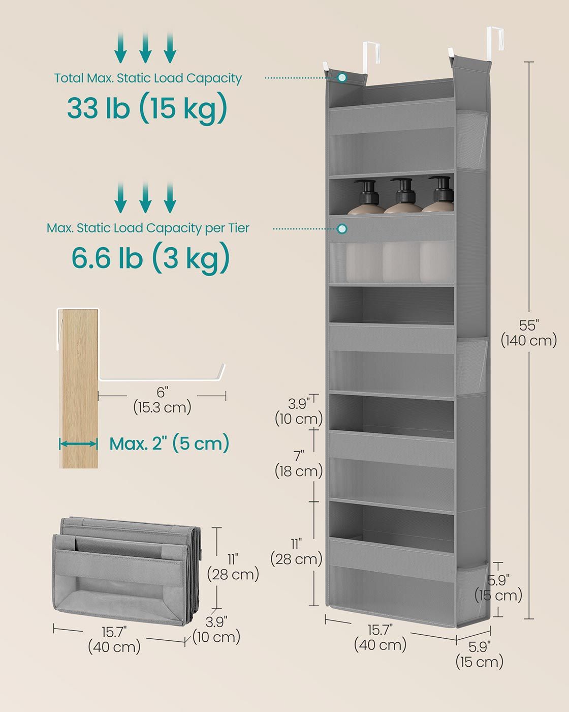 Door Organiser - ORAVAS Over Door Storage 5 Large Pockets Mesh - Dove Grey