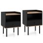 DOREX Set of 2 Side Tables with Drawer & Metal Legs-Black
