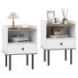 DOREX Set of 2 Side Tables with Drawer & Metal Legs-White
