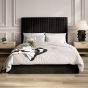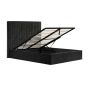 Upholstered in soft black velvet, this bed features under-bed storage and a headboard with elegant fluted vertical lines. Available in two headboard heights, its neutral colourway complements any interior.