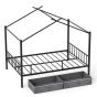 Double Bed - CEDRAL House Bed with 2 Drawers No Box Spring Needed - Black