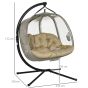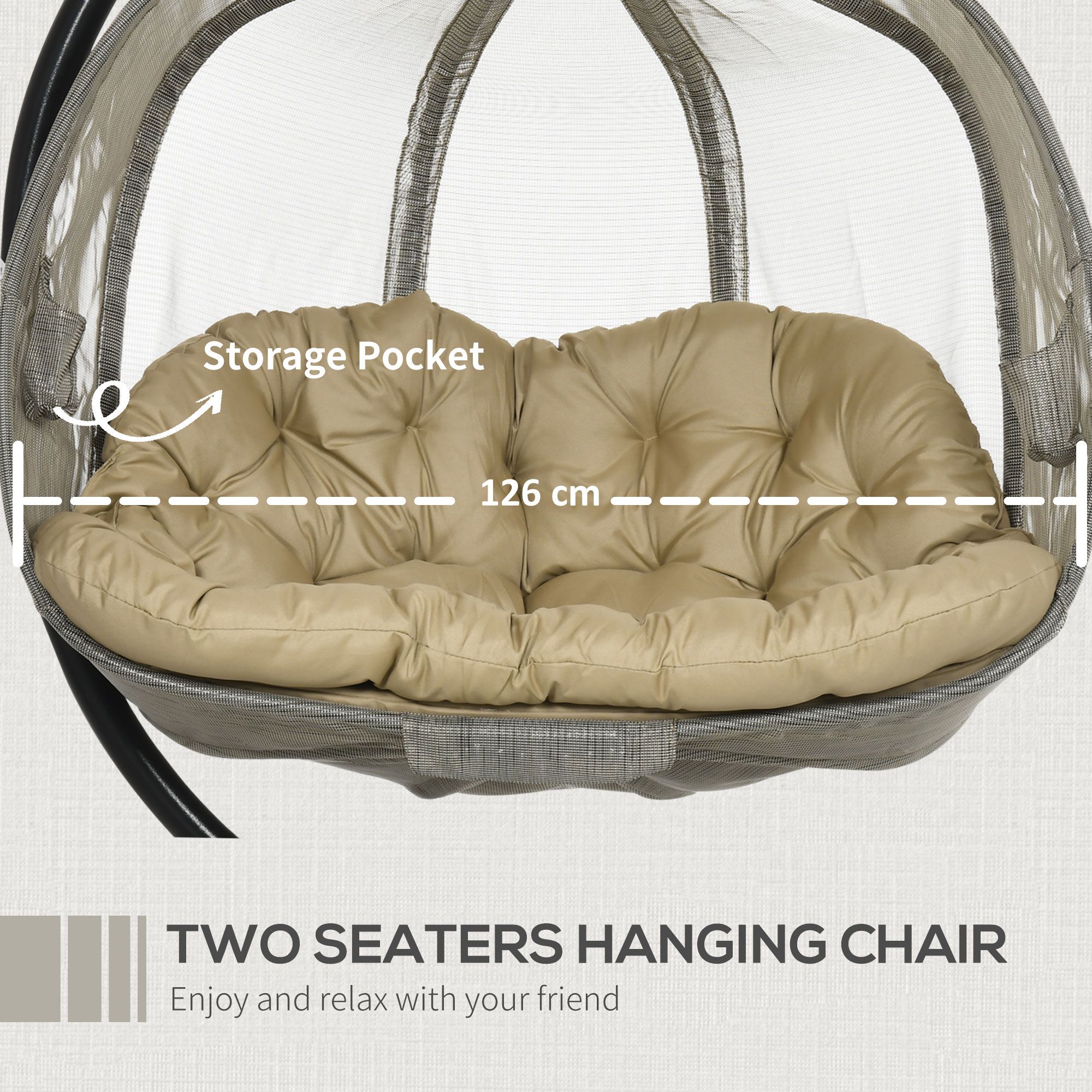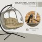 Double Hanging Egg Chair 2 Seaters Swing Hammock Chair with Stand, Cushion and Folding Design, for Indoor and Outdoor, Brown