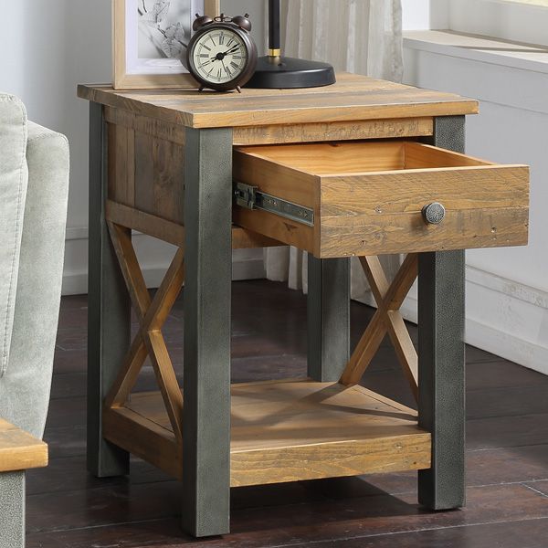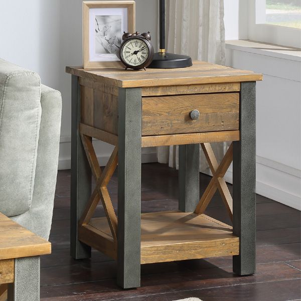 Introducing our charming bedside table from the divine Doyle Elegance range, perfect for adding rustic charm to any bedroom or living space. Crafted with sturdy reclaimed rough sawn wood and complemented by a distressed, powder-coated steel frame, this table combines industrial style with natural elegance. The unique cross design in the frame adds a touch of sophistication, making it a focal point in any room. Featuring a practical drawer for hidden storage and an open shelf for displaying decorative items or storing essentials, this table offers both functionality and style.
