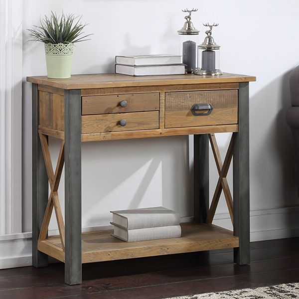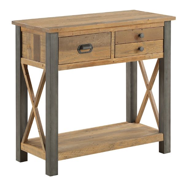 Doyle Elegance Rustic 3 Drawer Console Table with Open Shelf - Natural Wood