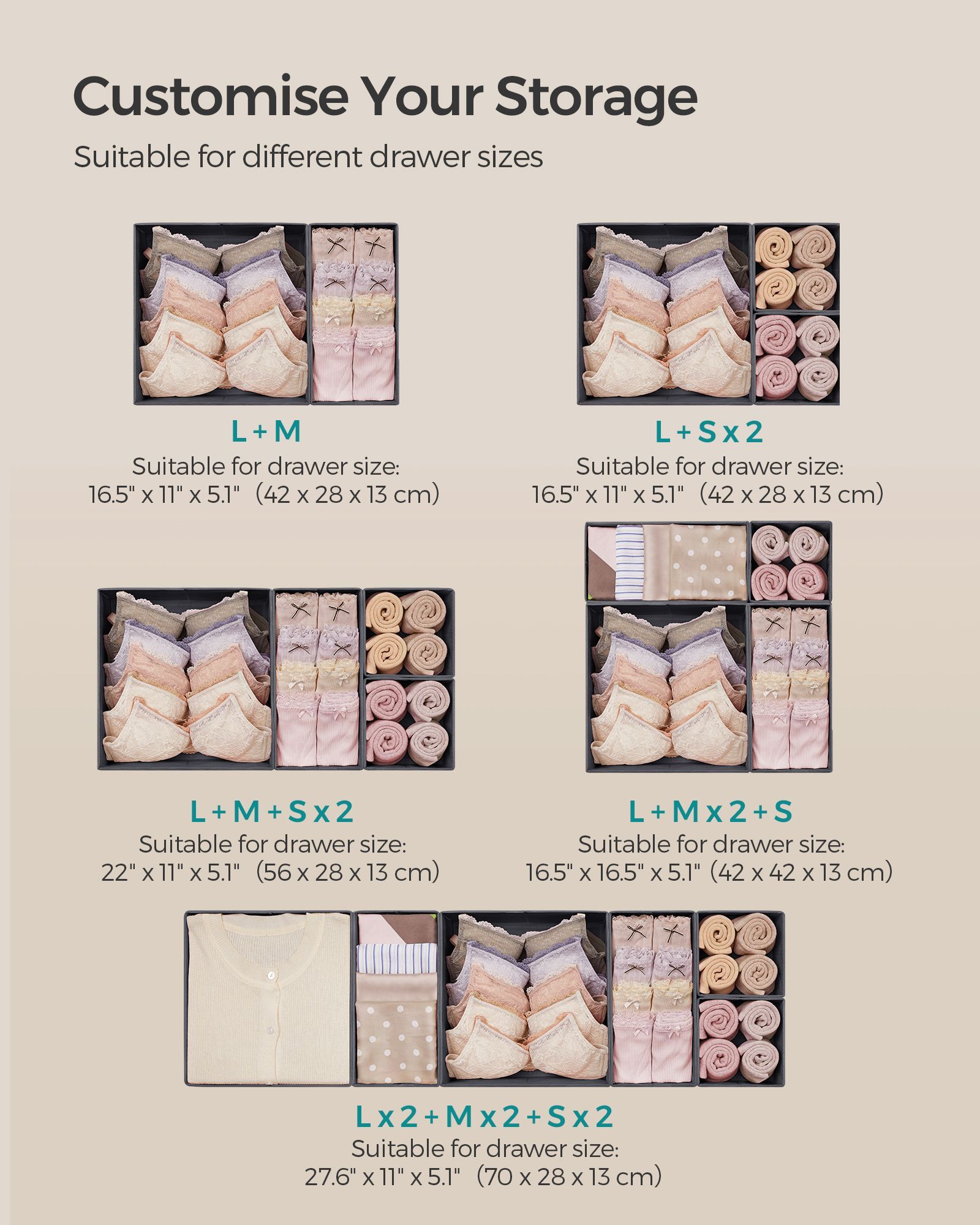 Drawer Organisers - AVOVA Foldable Fabric Set of 12 - Slate Grey