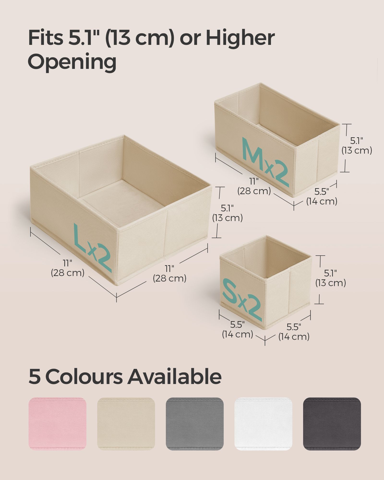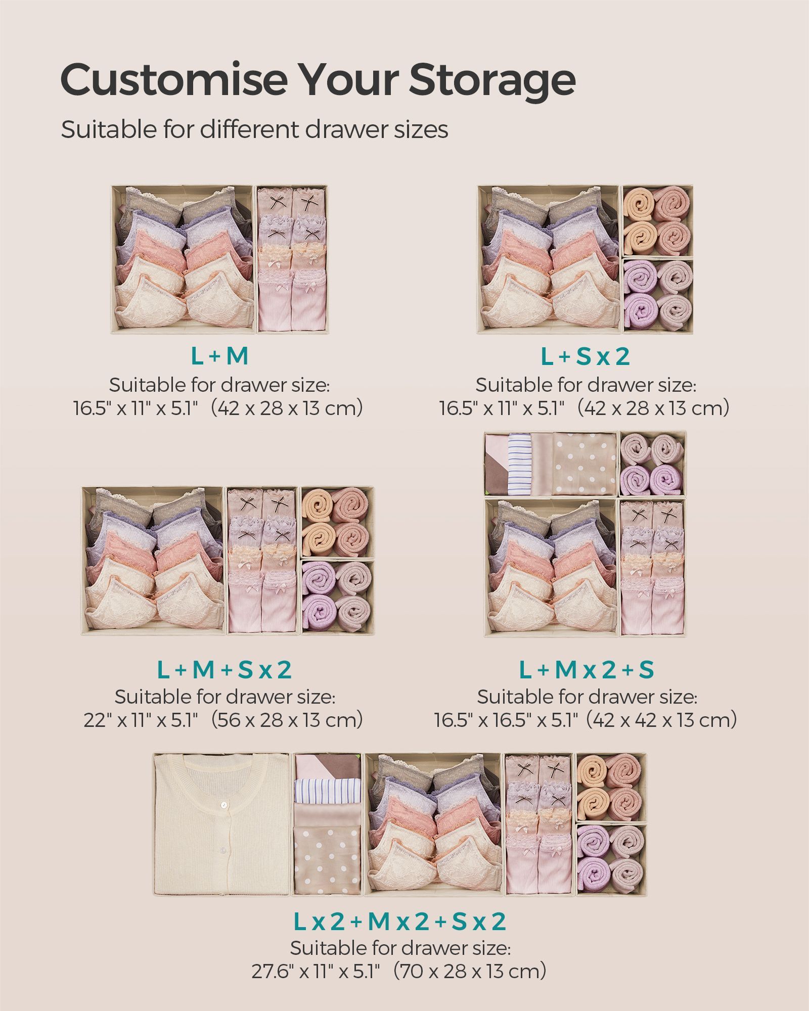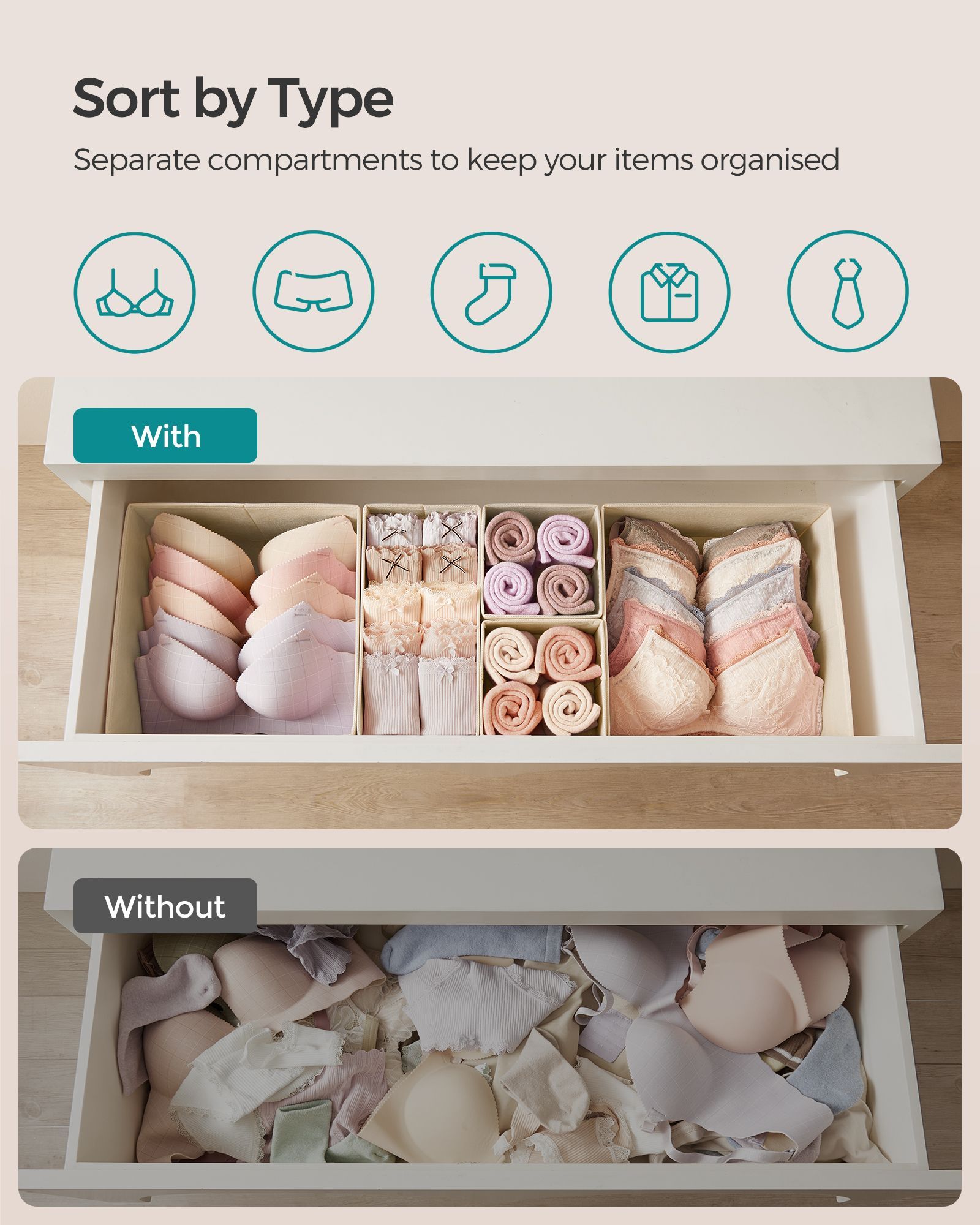 Drawer Organisers - AVOVA Foldable Fabric Set of 6 - Sand Beige