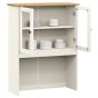 This dresser top provides an ideal solution to add more storage space to your dresser, sideboard, or buffet. Solid pine wood: Solid pine wood is a beautiful natural material. Pine wood has a straight grain, and the knots give the material its signature, rustic look. Made of solid pine wood, the Welsh dresser top is durable and sturdy.Ample storage space: With the shelves and glass doors, the dresser top shelf ensures a tidy and organised display of your dishes, cups, and bowls.Easy to maintain: The glass top for dresser is easy to clean with a damp cloth and requires less maintenance.Metal knobs: The kitchen dresser top comes with metal knobs that make it easy to open and close the kitchen shelf while adding to the extra beauty. Warning:To prevent it being overturned, this product must be used with the provided wall attachment device.