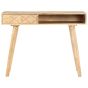 The simplistic wooden dressing table is a perfect choice for your bedroom. The dressing table is made of solid mango wood, a tropical hardwood with the strength to bear the weight. It also stands the wear and tear of time, making it stable and durable. The craftsmanship and the beautiful wood grains make every piece of furniture unique and slightly different from the next. The makeup desk features a drawer and a compartment providing ample storage space for keeping your essential items organised and within reach. Important note: Colours and grains may vary from piece to piece, making each piece unique. The delivery is random, ensuring the exclusivity and individuality of your product.