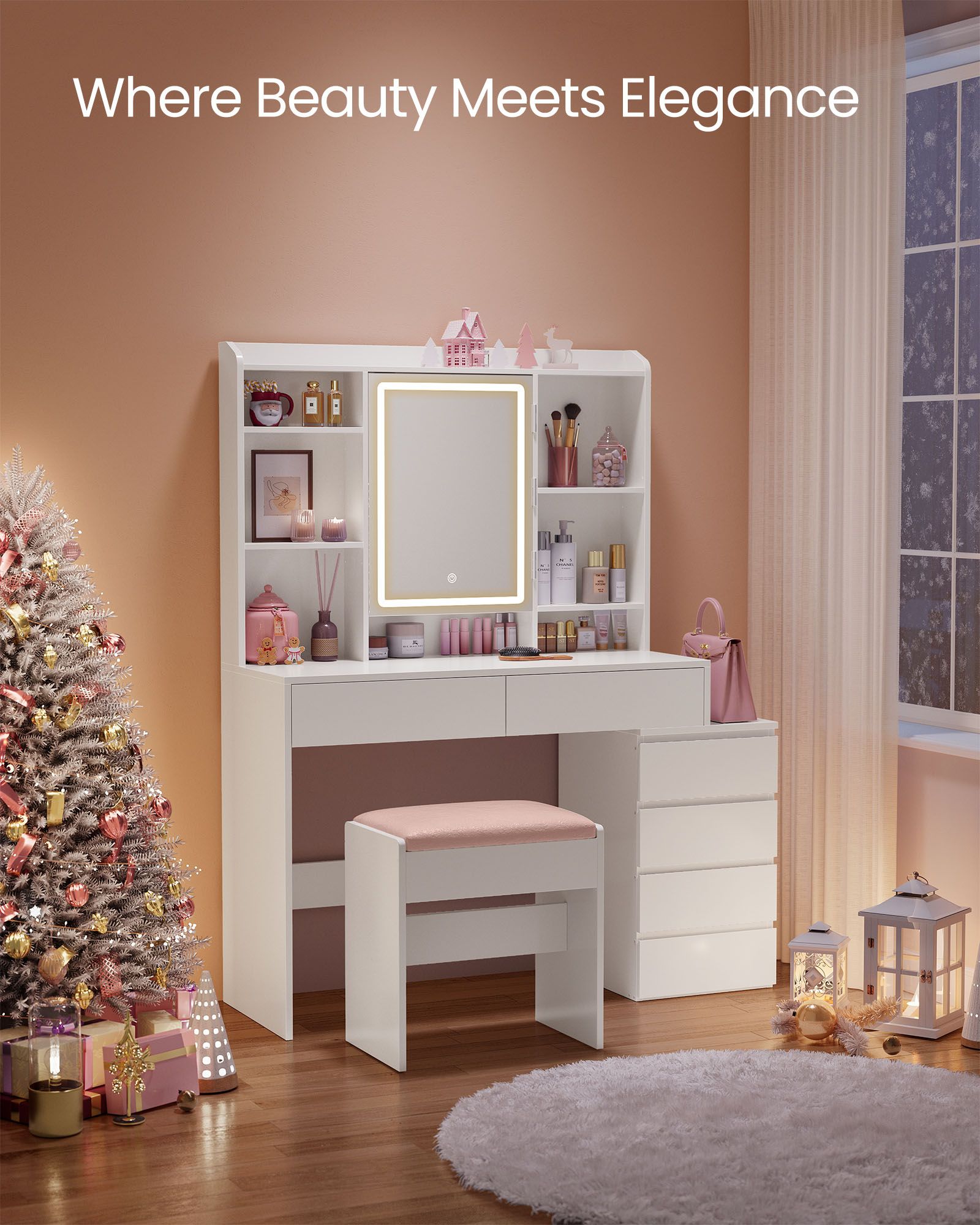 Dressing Table - LUMTA LED Lights and Drawers Vanity - White