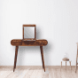 Dressing Table - RUSTICO 3 Drawer Curved Dresser with Foldable Mirror Brown 100cm