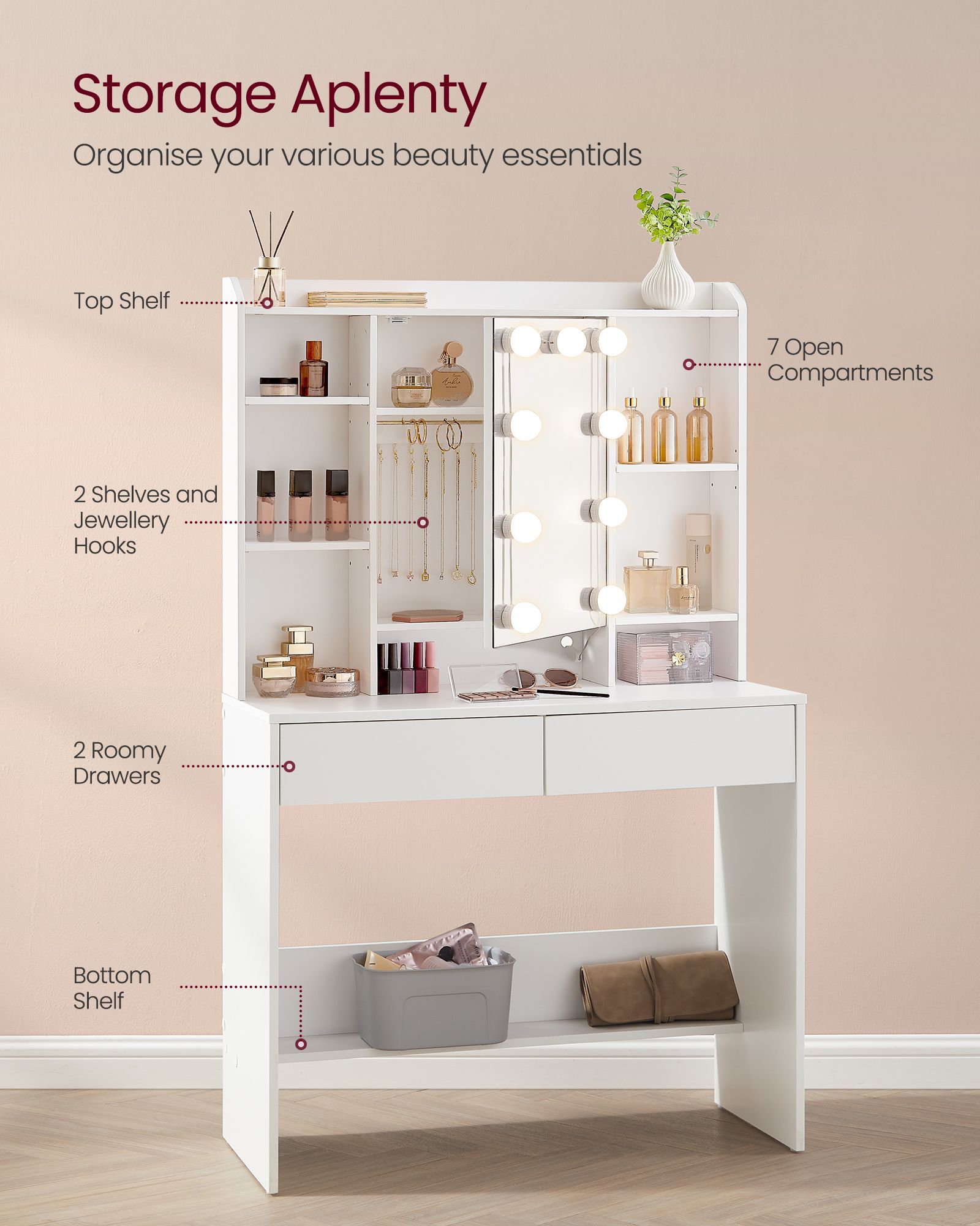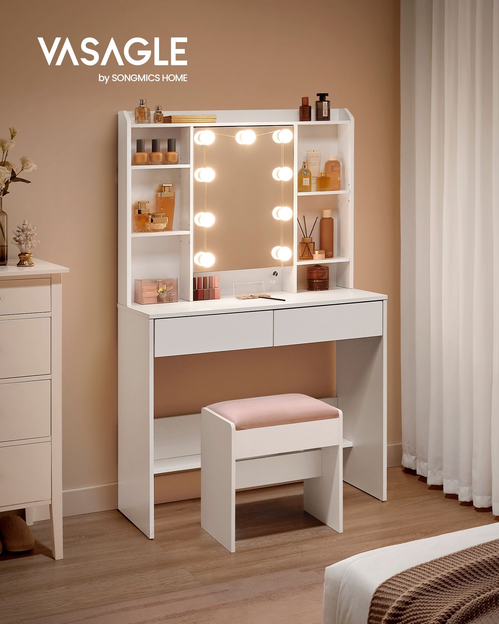 Dressing Table - SERVA LED Light Vanity Table with Drawer - White