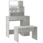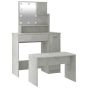 Dressing Table Set with LED Concrete Grey Engineered Wood