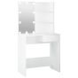 Featuring refined straight lines and an asymmetrical shape brimming with uniqueness, this dressing table is sure to turn heads! Durable material: The engineered wood is of exceptional quality with smooth surface and also features strength, stability and resistance to moisture.LED light: The cosmetic table also has LED bulbs with USB, which are easy to switch modes from warm to cold white. The featured LED bulbs around mirror illuminate your beauty as well.Ample storage space: The makeup table comes with a storage drawer to store your accessories, along with two open shelves on the table to store all kinds of bottles. WARNING:In order to prevent overturning, this product must be used with the wall attachment device provided. Note:Each product comes with an assembly manual in the box for easy assembly.
