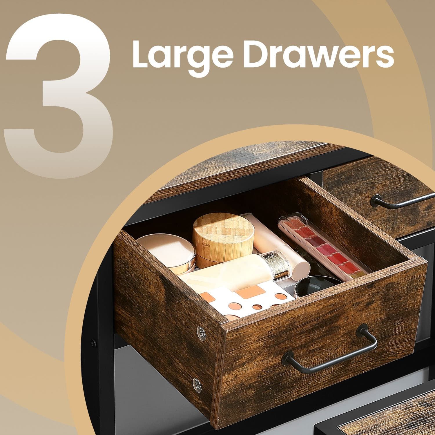 Dressing Table - ZARNIA Table with Stool Set Tri-Fold Mirror 3 Drawer Vanity - White