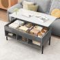 DRYTHORN Lift Top Coffee Table with Large Hidden Compartment and 3 Open Cubbies-Grey