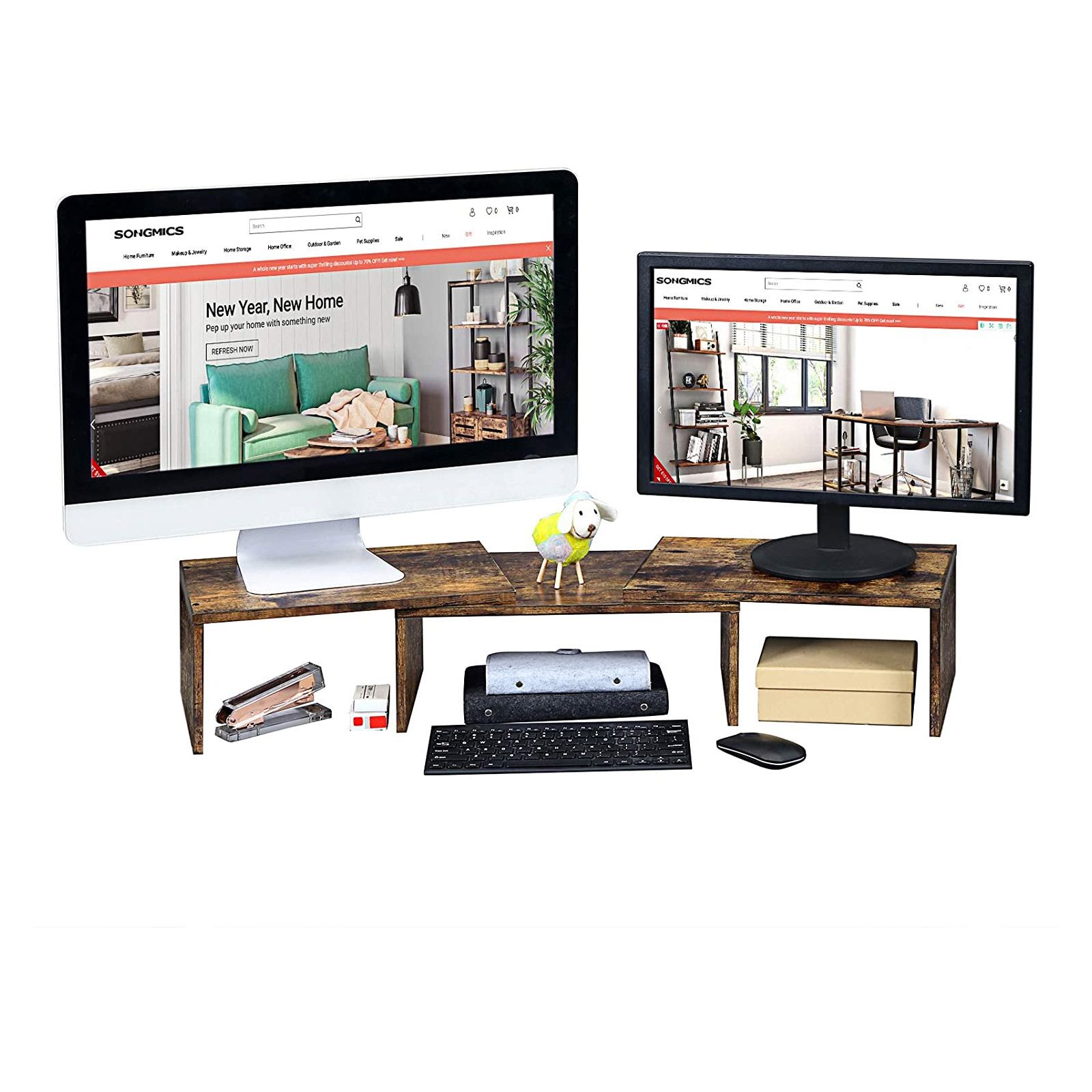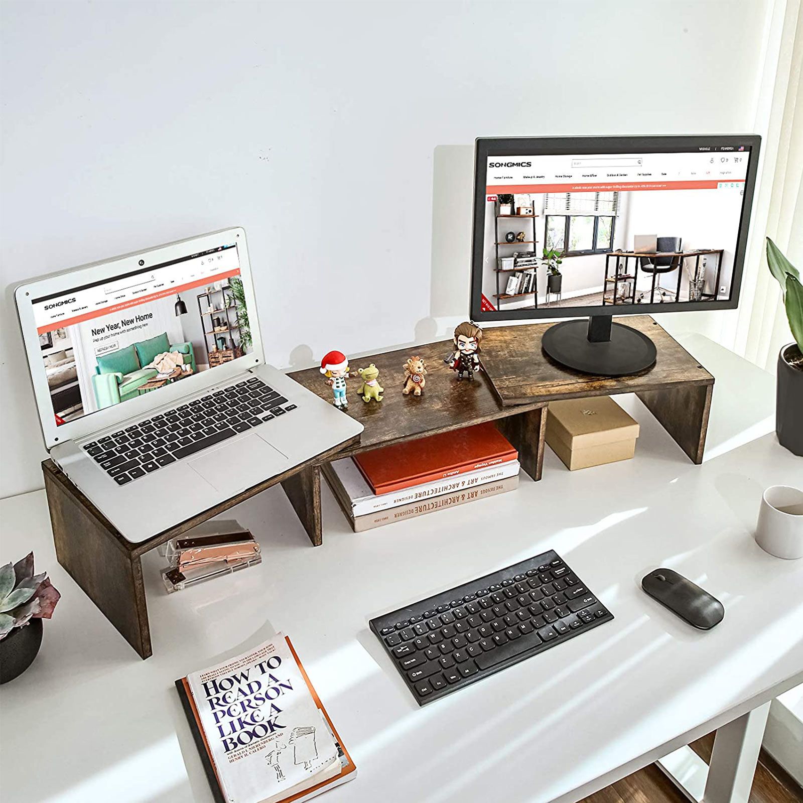 Simplicity, All in One: Have you been scared by a lot of files scattered on your desk? Or do you always spill over coffee that you don't know where to put it? Now, consider adding a new member to your family—a double screen riser. With ample space above and three spaces below, your notebooks, snacks, coffee or gaming device will have their own homes.See a Larger Image: This dual laptop stand is at the perfect height to allow you to handle different social platforms and not miss any of the latest gossip. You can also check the email your boss just sent you while modifying the details of your drawings.