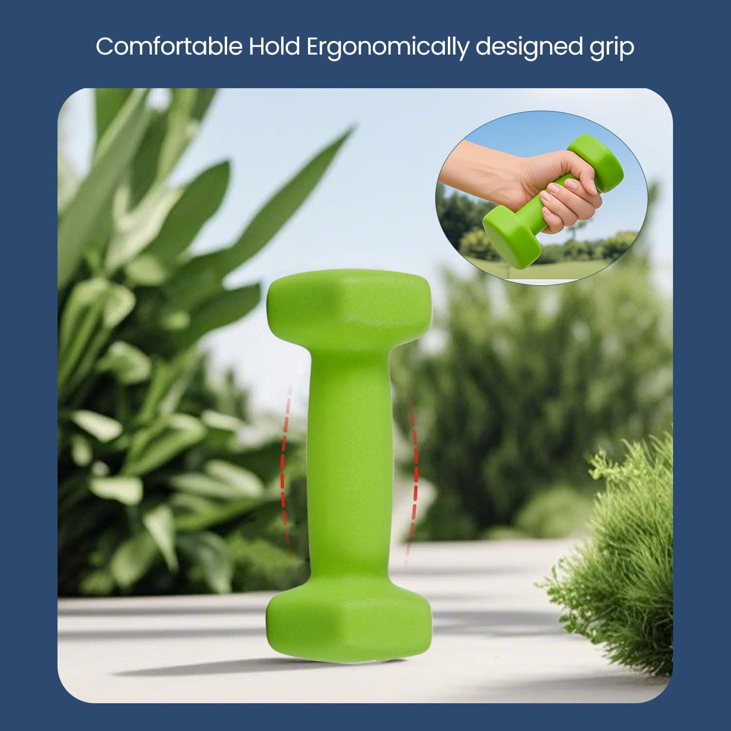 Dumbbell Set - LUSNOS Neoprene Hex Dumbbells with Stand - Green