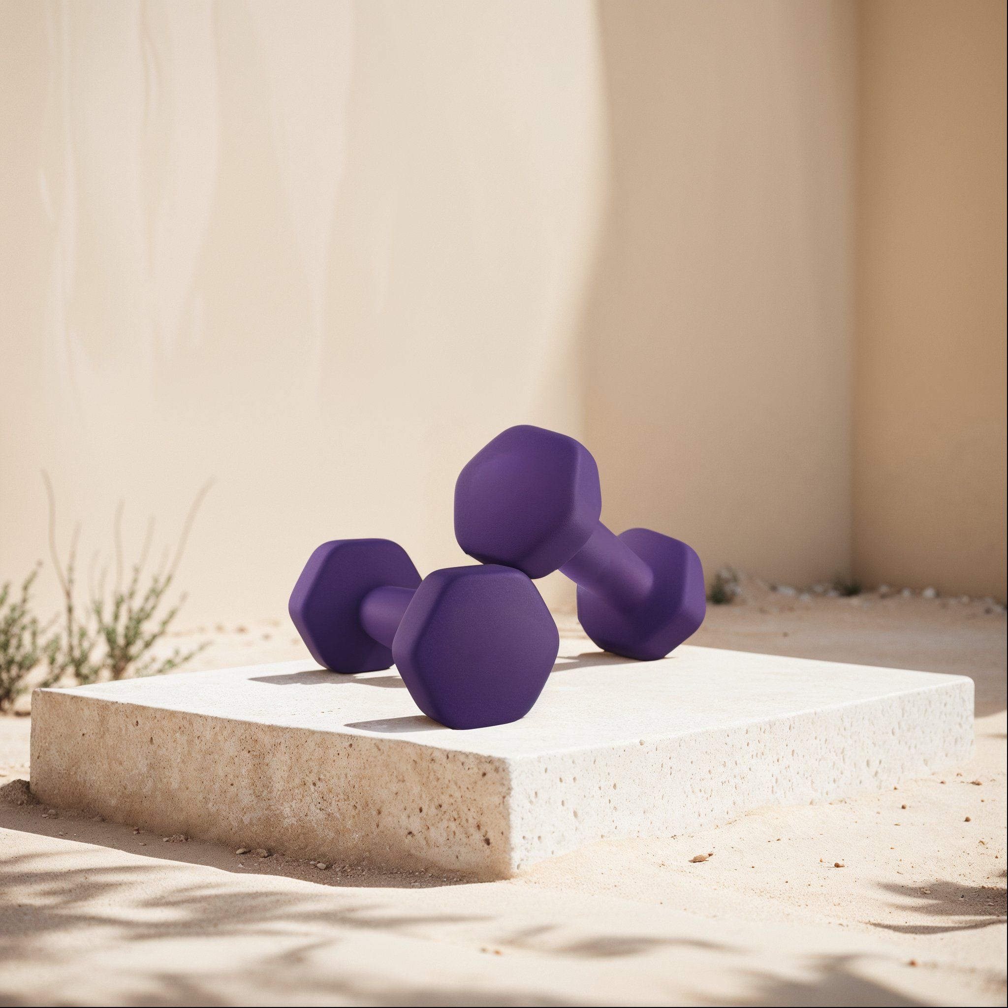 Dumbbells - LUSNOS Set of 2 Neoprene Hex Dumbbells 2 kg - Purple