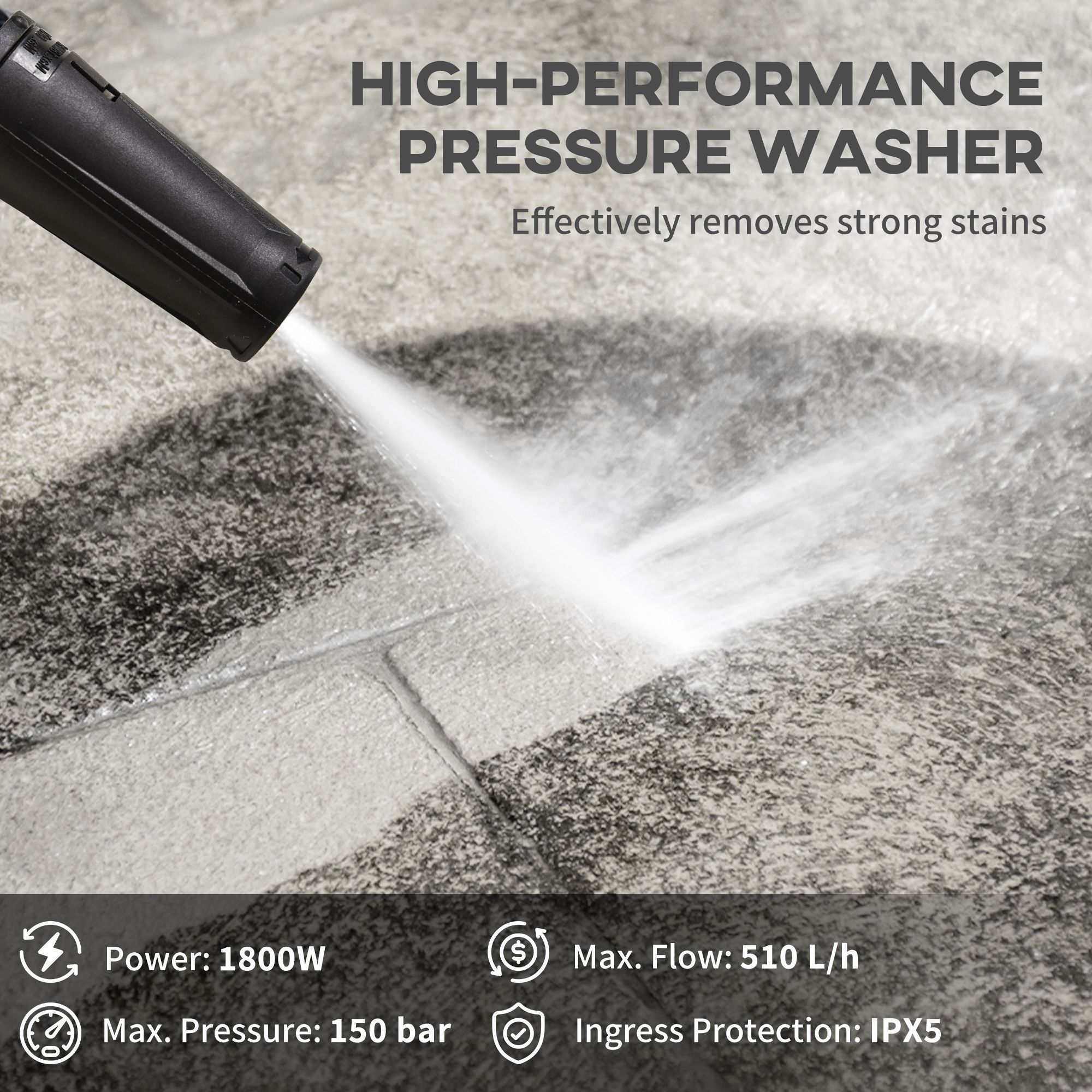DURHAND High Pressure Washer, 150 Bar Pressure, 510 L/h Flow, 1800W, High-Performance Portable Power Jet Wash Cleaner, Blue