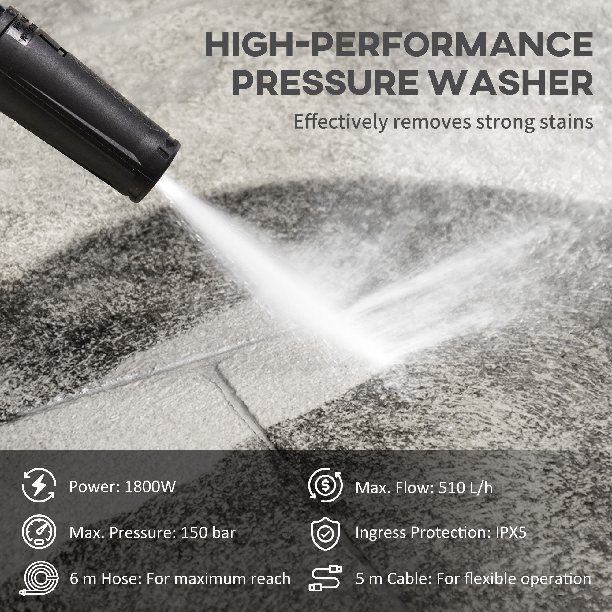 DURWELL 1800W High Pressure Washer, 150 Bar Pressure, 510 L/h Flow, High-Performance Portable Power Washer Jet Wash Cleaner with 6M Hose, Yellow