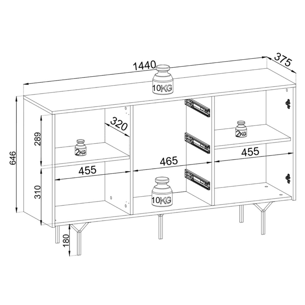 - Duskwing Quixar Sideboard with 3 Drawers and 2 Doors - Graphite