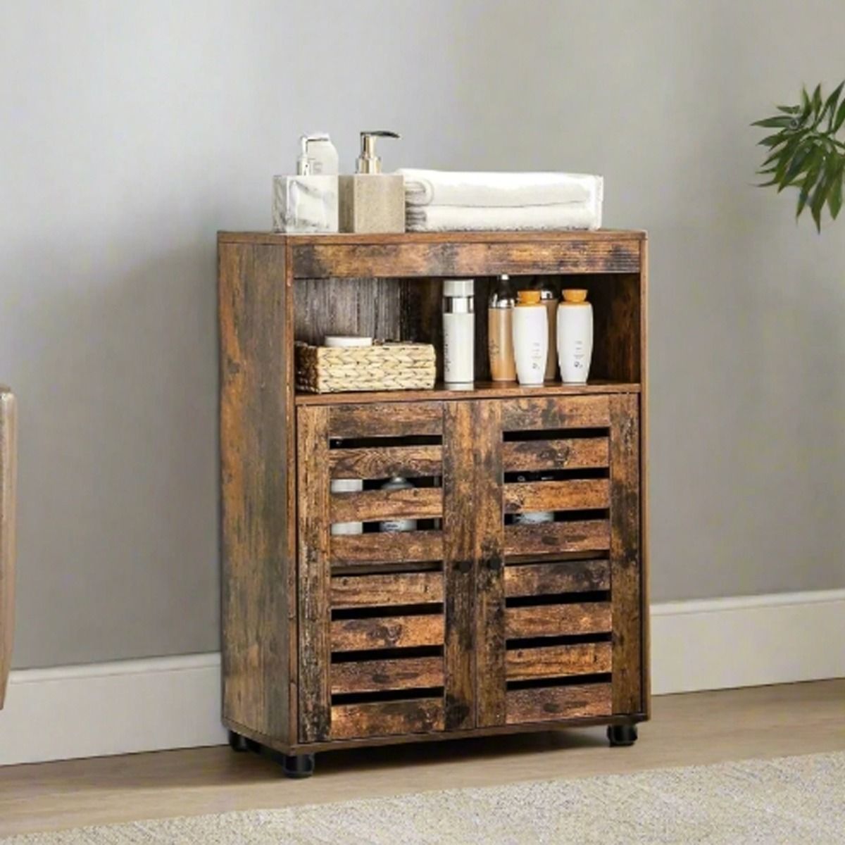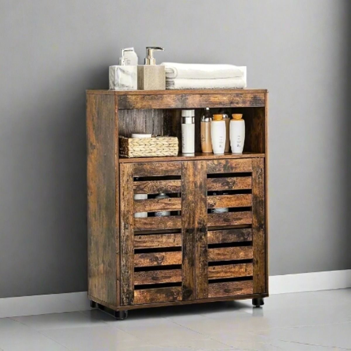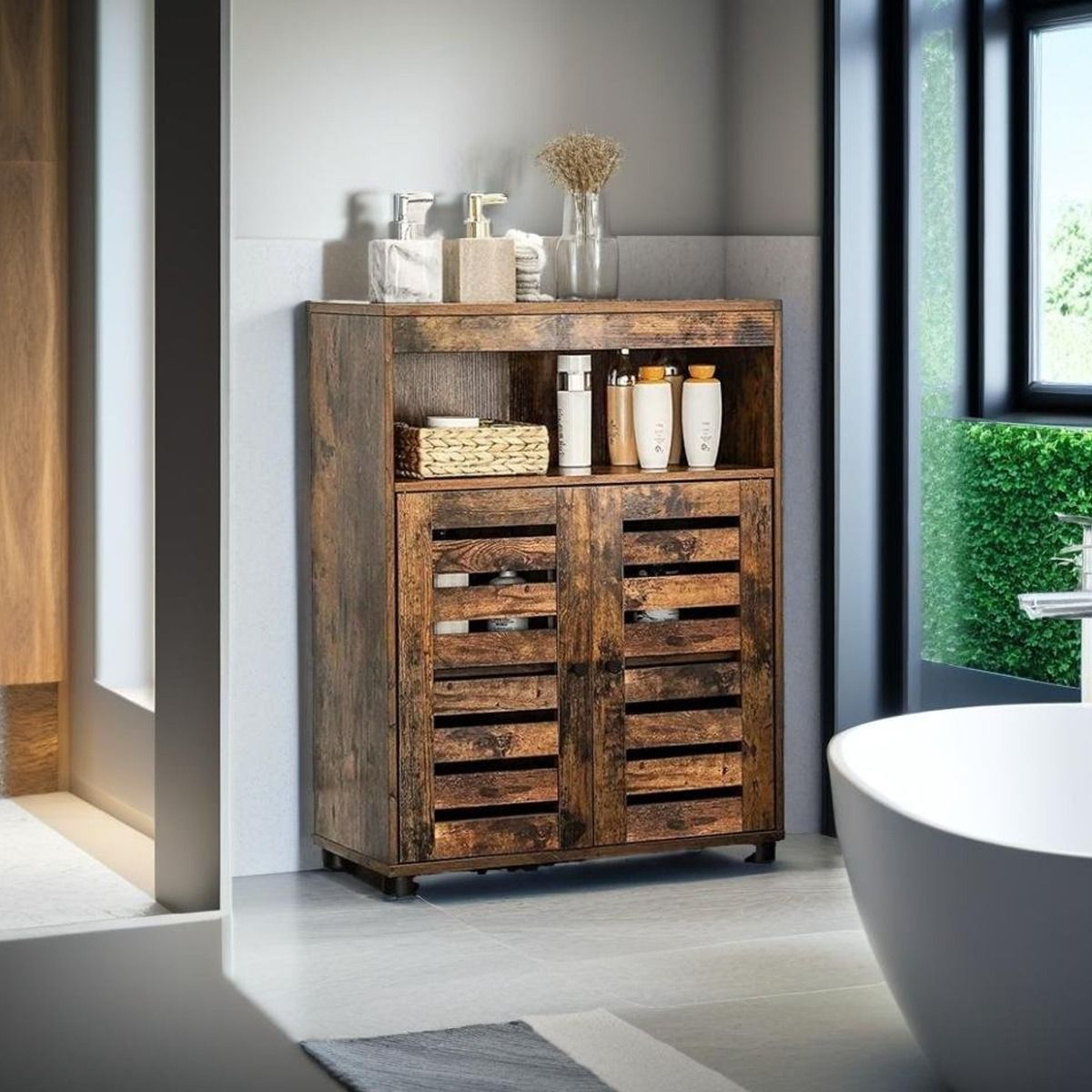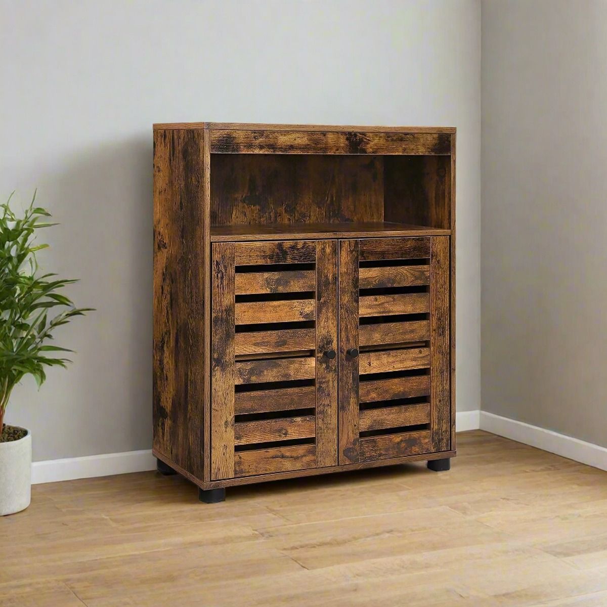 DUVANTI Bathroom Cabinet 4-Tier Unit with Louver Doors - Rustic Brown