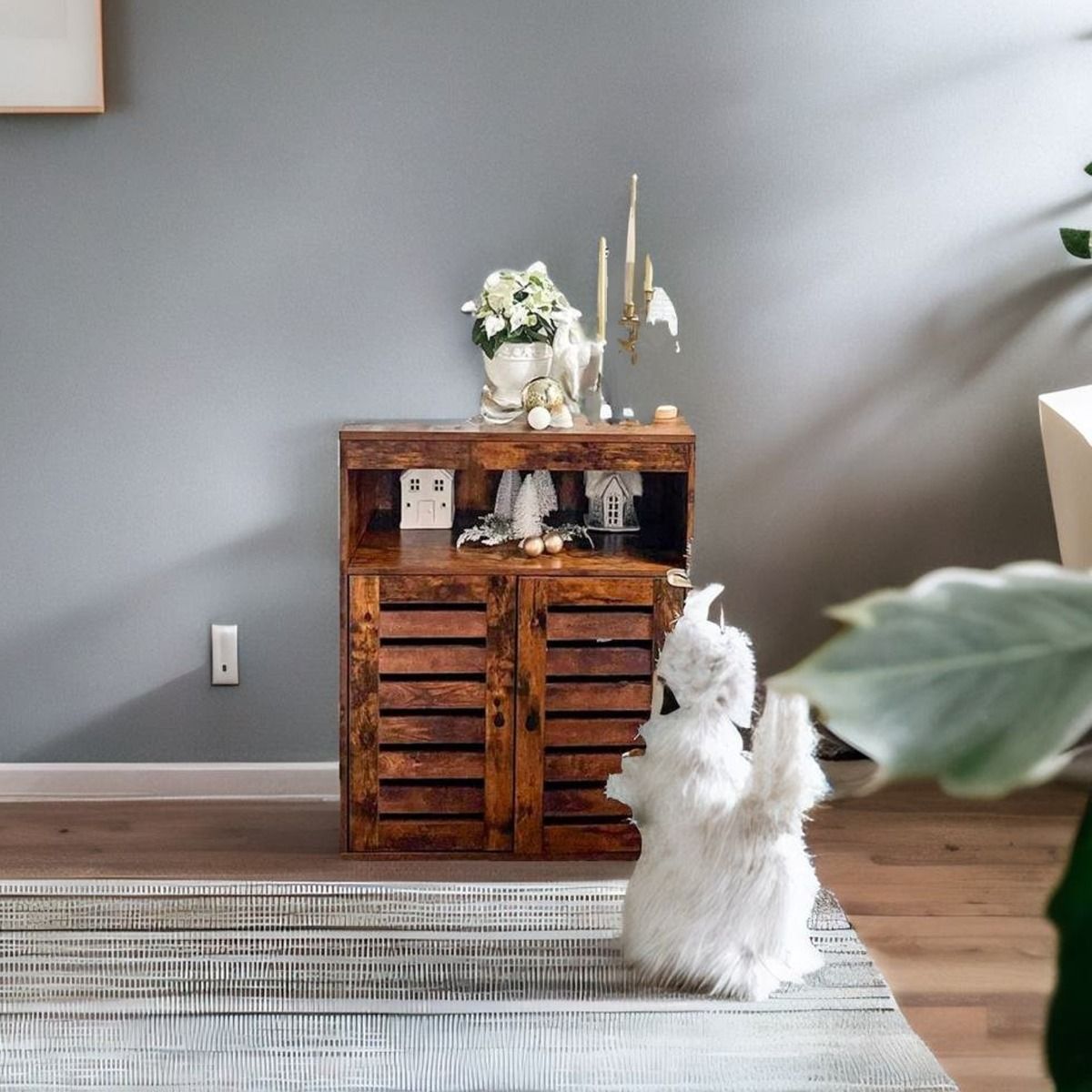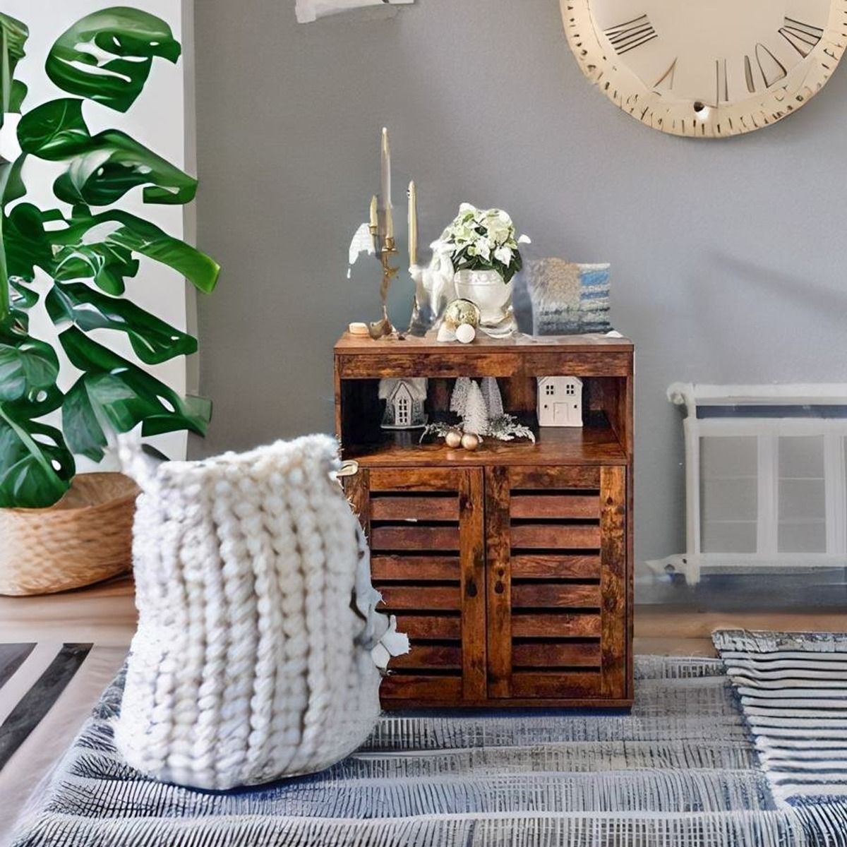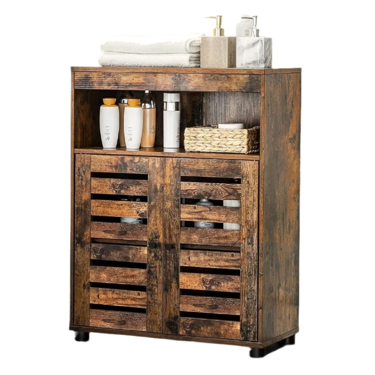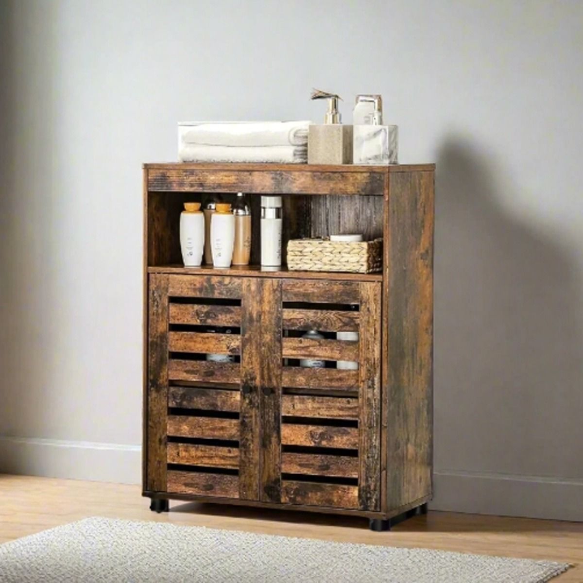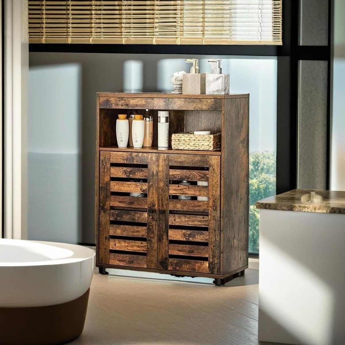 DUVANTI Bathroom Cabinet 4-Tier Unit with Louver Doors - Rustic Brown