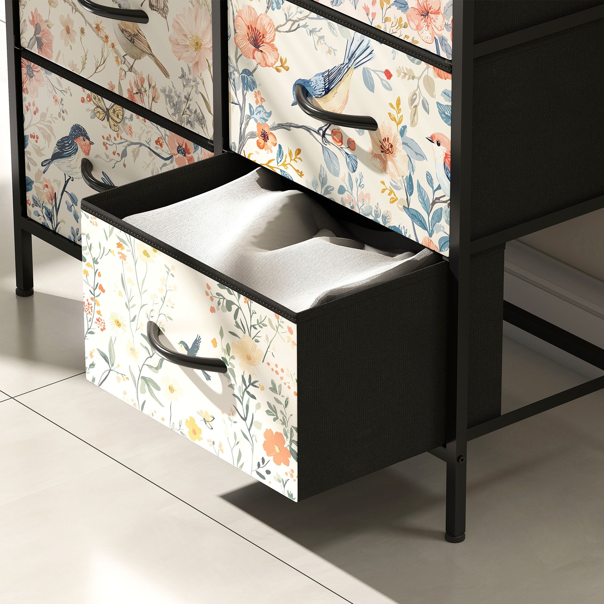 DWELVA Multi Colour Chest of Drawers - Medium-sized, 6 Drawers, Double, Fabric Drawers - Bird Print