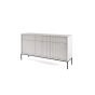 Dyfed Sideboard 154cm in white. Three spacious door compartments and three drawers. With a beautiful slick matte finish and slim moder legs, the Dyfed unit is the perfect blend of chic and cosy living. Metallic gold handles provide a chic finish. An ideal addition to your living room.