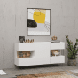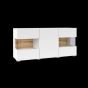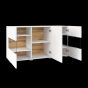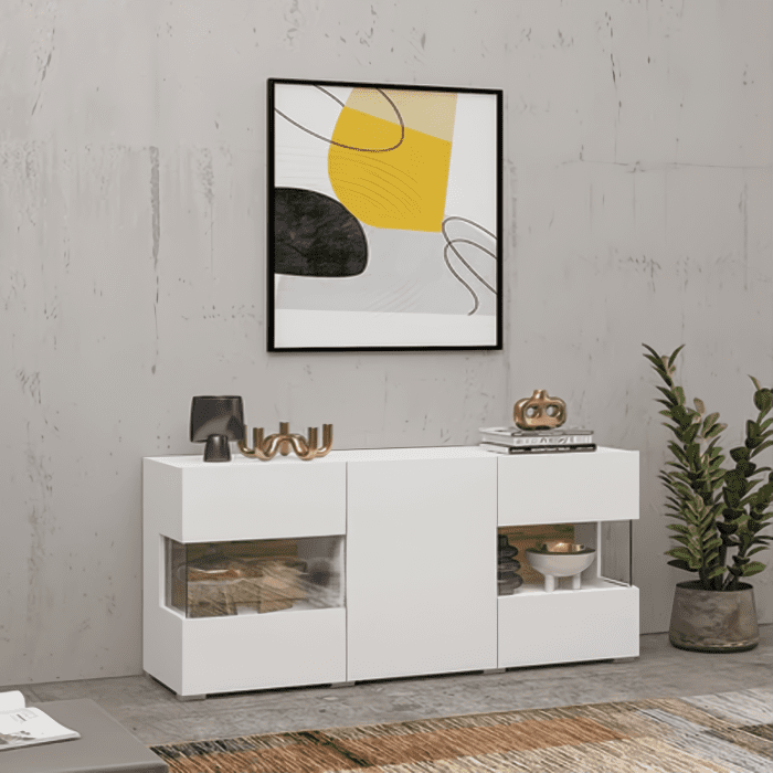 Rich in style and functionality, This is a stunning display sideboard. It has three hinged doors (two partially-glazed) and five shelves for storage, offering an ample space for all your everyday essentials. It is made from 16mm laminated board with clean lines and a minimalist design allowing it to blend effortlessly into any modern or contemporary decor.